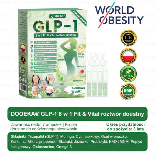 🍀🍀🍀🍀DOOEKA® GLP-1 8 w 1 Fit & Vital roztwór doustny – Raz dziennie, widoczne zmiany w ciągu 7 dni / W przypadku otyłości, zdrowia serca i układu krążenia, cukrzycy, bezdechu sennego, zdrowia jelit, problemów ze stawami i wielu innych