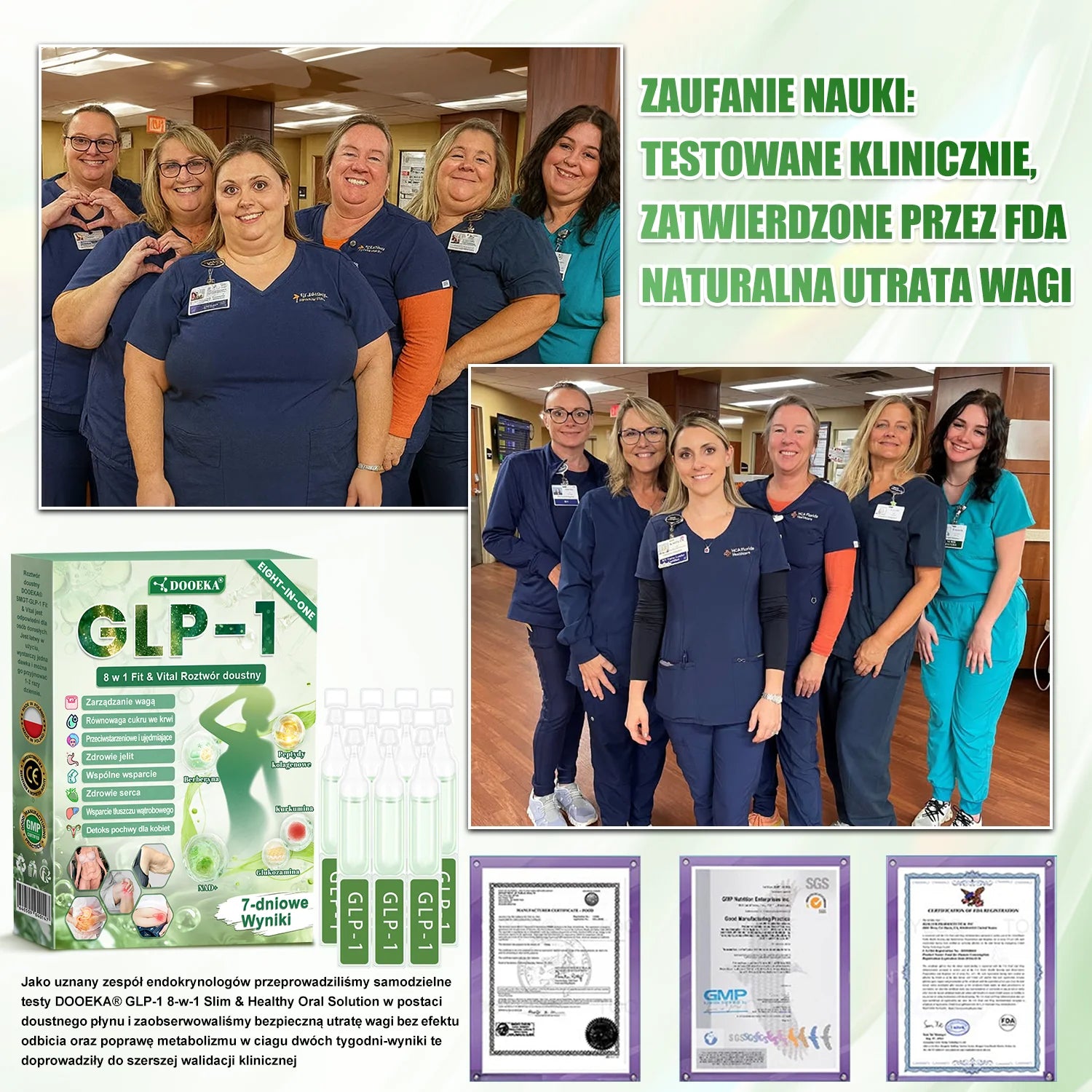 DOOEKA® GLP-1 8-in-1 Fit & Vital Płyn Doustny został przetestowany klinicznie przez endokrynologów, a jego aktywacja może już w ciągu 7 dni znacząco poprawić otyłość i inne problemy zdrowotne.